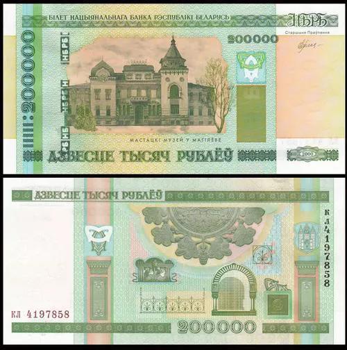 卢布货币面额:有1、5、10、20、50、100、500、1000、5000、10000、20000、50000、100000、200000卢布等面额纸币。