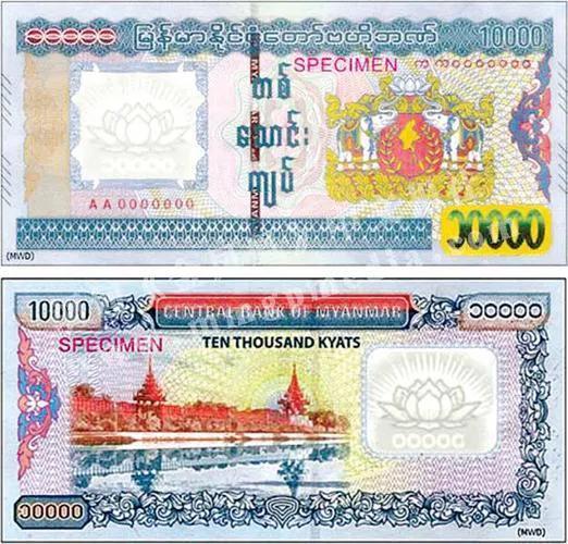 最大面值纸币:1万缅币