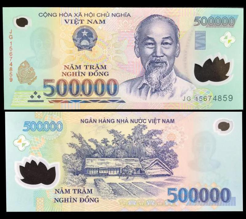 最大面值纸币:50万越南盾