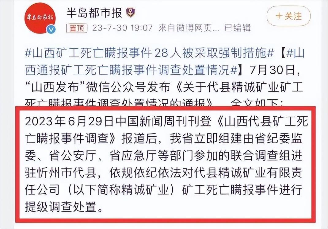 而这件事情的起因是在6月29日的时候,一篇《山西代县矿工死亡瞒报事件调查》报道以后,瞬间引起了全网的轰动。
