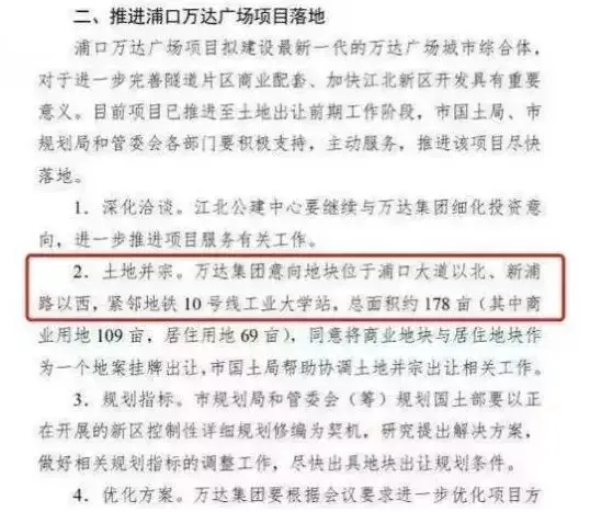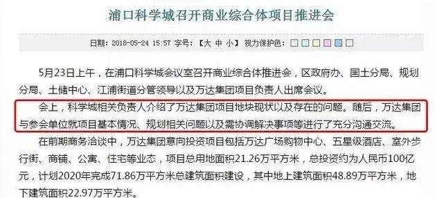 2018年5月23日,浦口区人民政府官网显示:浦口科学城召开商业综合体推进会,万达超级综合体或将落户江北。