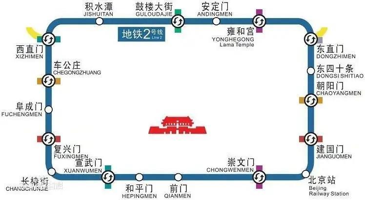 说完皇城四,再说下四九城里的九,它则代表的是北京内城的9座城门。北京内城是明朝时在元大都基础上改建的,后来又在它的基础上建了外城。比较可惜的是,北京内城的城墙和大部分城门都伴随着上世纪60年代北京地铁的开工,彻底消失了,而消失城墙的地下却又建起了北京二号线,所以坐二号线一圈就等于环游了老北京内城了。另外在二号线里,除了德胜门,其余八座城门都有自己的站名。所以这九座门就是东边的朝阳门,东直门,西边的阜成门,西直门,北边的安定门,德胜门,南边的崇文门,宣武门,正阳门(前门)它们三也被称为前三门,不过有坐过北京2号线的朋友,可能会发现了,这北京二号线里还有个建国门、复兴门、和平门三个门,但实际它们都不是城门而是民国和日伪时期开辟的门洞。