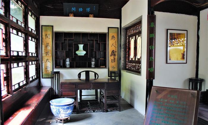 顾毓琇还是上海戏剧学院的创办人,余秋雨也是上海戏剧学院的教授。1945年10月,上海市教育局局长顾毓琇提议成立上海市立实验戏剧学校,这就是上海戏剧学院的前身。图中是顾毓琇纪念馆的怀椿阁,有一副对联,为人民服务,开万世太平。怀椿阁是顾毓琇读书的书房,临池而建,窗户镂空,采光很好,通透敞亮,视野开阔。顾毓琇是当之无愧的文理大师,母亲王镜苏是王羲之的后裔,祖母是词人秦观的后代,真是家