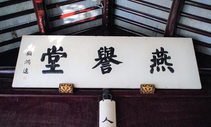 这个就是燕誉堂,落款也是顾鸿逵。燕誉堂在苏州旅游的时候,狮子林的主厅也是这个名字,取自诗经,式燕且誉,好而无射。顾毓琇老家原来在江苏昆山一带,明代中期来到了无锡,当时租赁蓉湖庄丁降里这个地方。到了明代嘉庆年间,也就是1807年,才在无锡西南虹桥湾这个地方,建造祖宅。当时有惟善堂,亲仁堂,还有燕誉堂。顾毓琇这一支就住在燕誉堂里,到了顾毓琇母亲王镜苏的时候,把燕誉堂改名诵芬堂。现在
