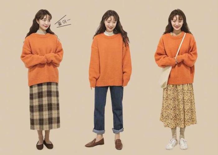 ↑橘色卫衣的三种搭配,你更喜欢哪一种?格子裙的复古,牛仔裤的休闲帅气,碎花裙的可爱甜美,同一件衣服穿出不同的调性来,这就是一衣多搭的妙处。