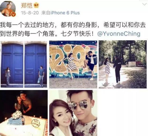 没过多久,在那一年的七夕,郑恺就公布了和程晓玥的恋情。
