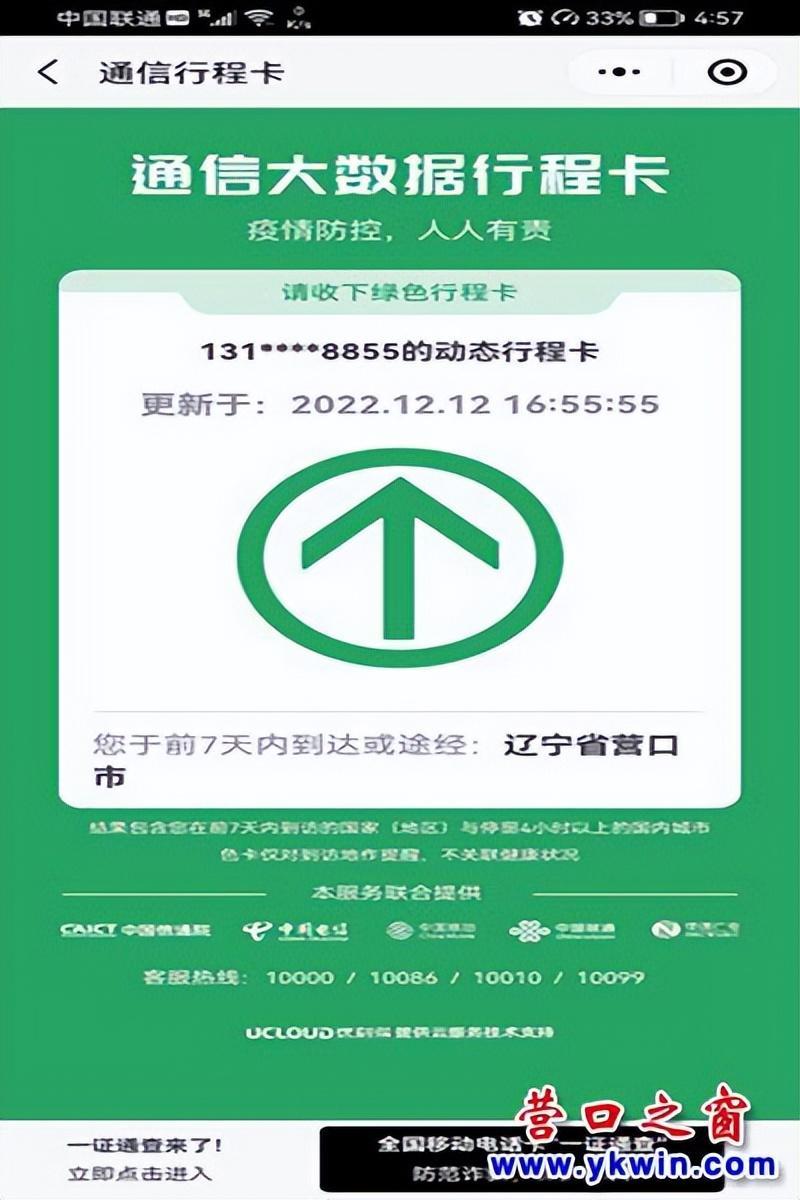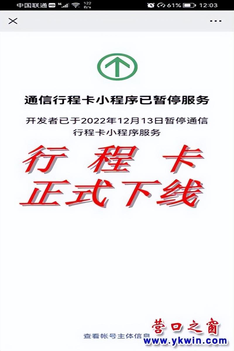 (营口之窗“百姓说事”)根据国务院联防联控机制综合组要求,今天(12月13日)0时起,“通信行程卡”正式下线,“通信行程卡”短信、网页、微信小程序、支付宝小程序、 APP等查询渠道也将同步下线!这无疑是历史性的时刻,陪伴了大家三年的行程卡落幕,终于和大家说再见了。