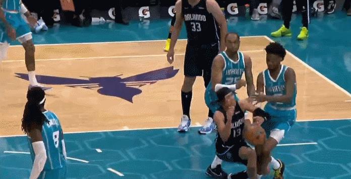 然而本场比赛的高潮却在第四节中段的时候才正式上演,在魔术队进攻篮筐时和黄蜂球员撞在一起,冲突球员被拉开之后,以为这个小插曲就此结束。然而戏剧性的一幕出现了,另一边的球员又打了起来,在裁判和球员的努力下才将冲突球员拉开。