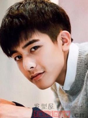 初中男生都是如何剪头发的呢?自然黑色的头发,简单的修剪成齐刘海短发发型的造型,俊秀的脸庞,简单清爽利落。
