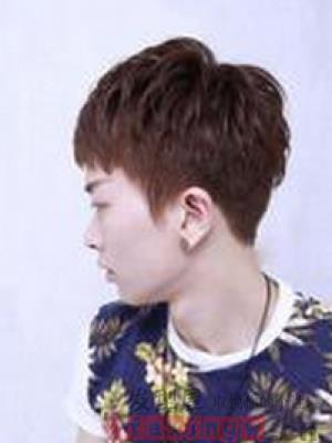 圆脸男生比较适合的一款深咖色系的清爽短发发型,刘海也简单的打理成斜刘海的造型,自然修颜清爽又帅气。