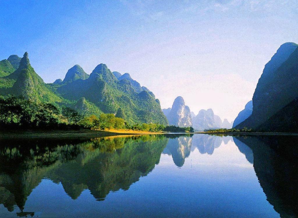 4、桂林山水:有着举世无双的喀斯特地貌,既有“山青、水秀、洞奇、石美”四绝,又有“洲绿、滩险、潭深、瀑飞”之胜,素有“桂林山水甲天下”的美誉,引无数游人竞折腰。
