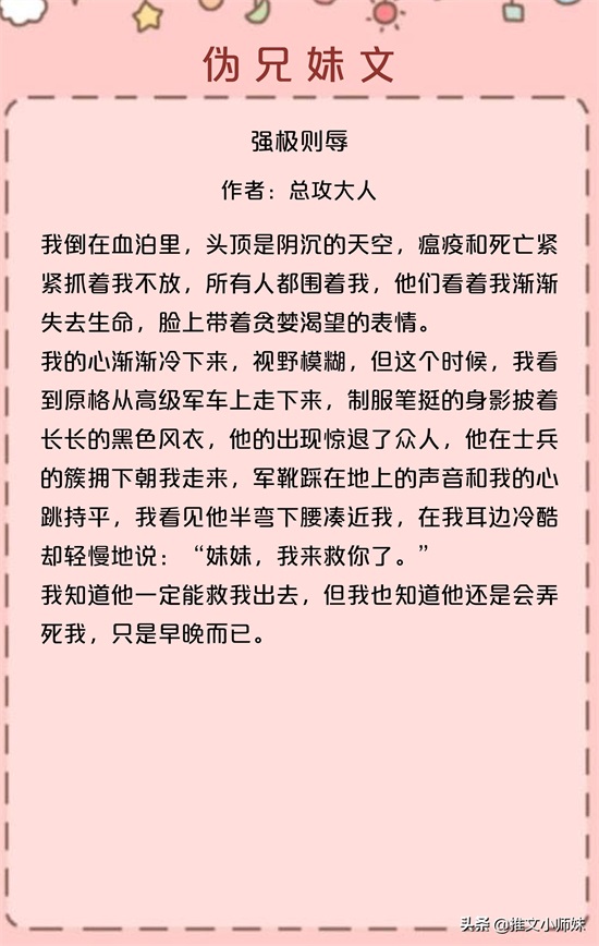 强推!伪兄妹文,《荆棘花园》《强极则辱》有肉有剧情,超带感