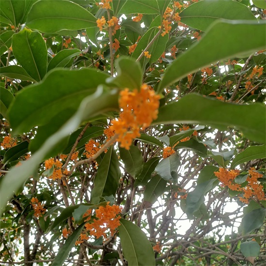 桂花开在秋季,所以每每桂花盛开就说明天气已经转凉,而且这天气凉得恰到好处。清风迎面吹来,香气片刻缠身,心情也为之一舒,独自踱步在桂花丛中,抬头嗅到一股桂花的香气,幽幽的,若有似无,煞是沉迷。不知不觉中,莫名的忧伤犹如此时桂花的香味!