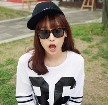 小脸女生若想要修饰高额头,直接选择一款齐刘海的中长发披肩发就可以了,巧克力色的染发色优雅迷人,自然的齐刘海轻松修饰额头部分,搭配休闲风的白色长T以及棒球帽,呈现出运动活力感十足的范儿。