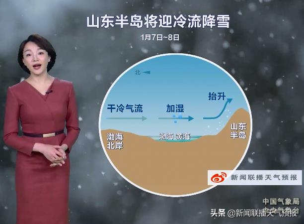 而山东半岛的冷流降雪虽会减弱,