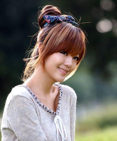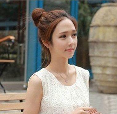 用发带给造型做了简单的搭配,这款女生的丸子头发型,有了刘海的修饰,更加明媚起来。但这款发型对发质和发量的要求比较高,必须是头发比较直,且发丝比较多才能梳的好。