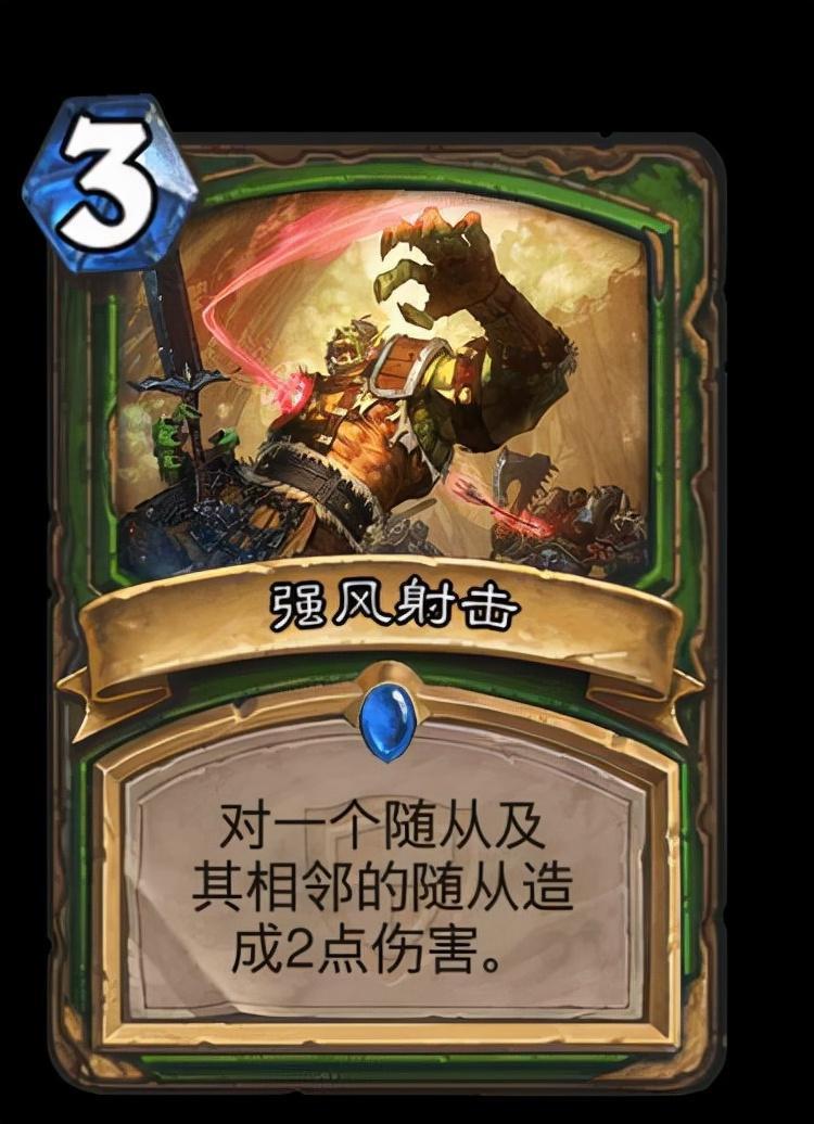 任务术消失后最适合版本的单卡,集场面与伤害为体,除了对阵铺场快攻基本都可以-一费直接挂,搭配强风射击还可以完成斩杀。不缺尘的话建议带两张,基本不会卡手。