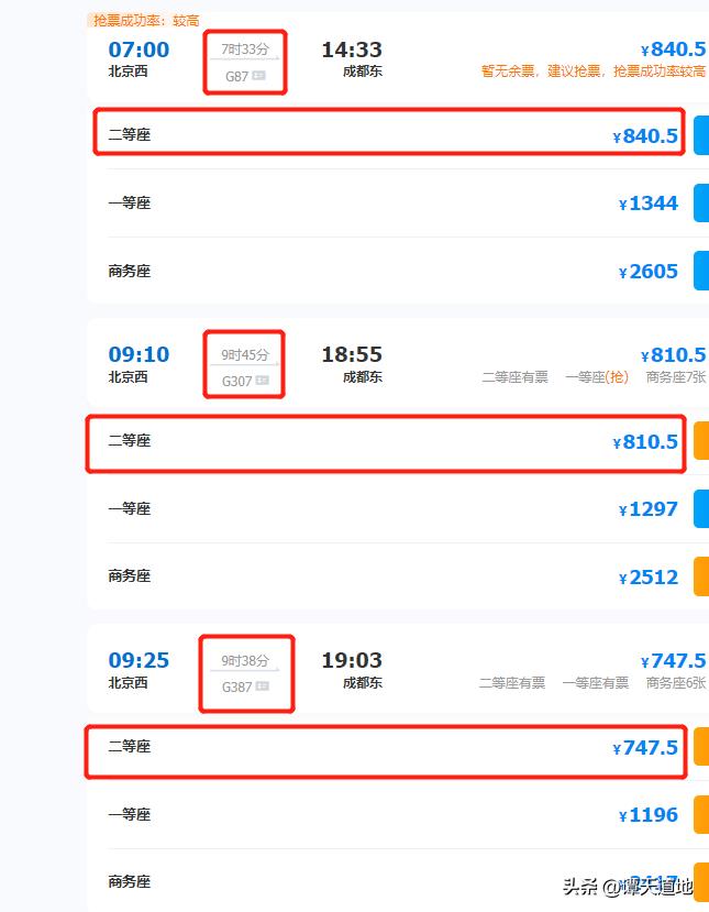 这3趟高铁的票价如何,我也给大家做了标注,希望对你有帮助!
