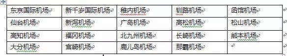 开设海外航线的日本国内的航空公司有7家。各航空公司主要出发的“据点机场”一览表如下: