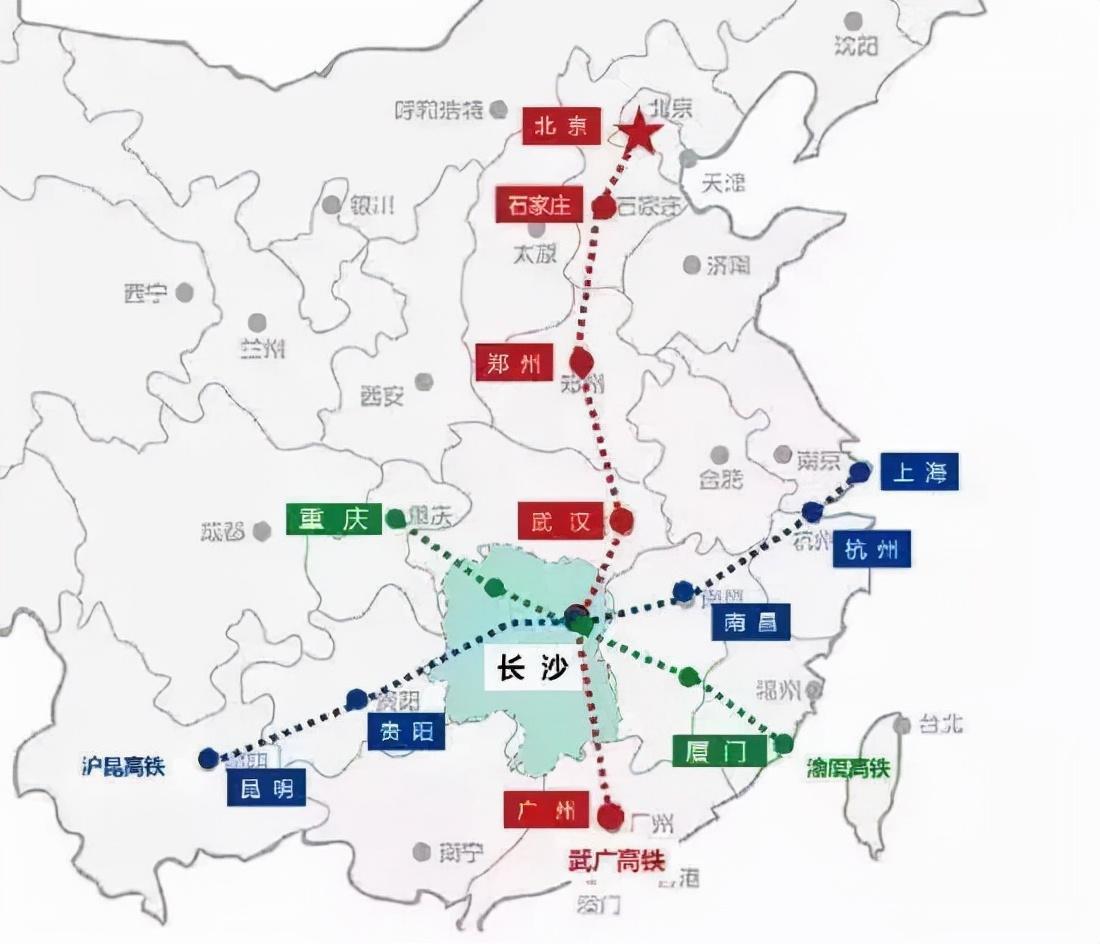 第九名,长沙。是京广高铁和沪昆高铁的交汇点枢纽,是中部地区的重要交通枢纽之一,规划有渝长厦高铁。主要车站有长沙站、长沙南站、长沙北站。