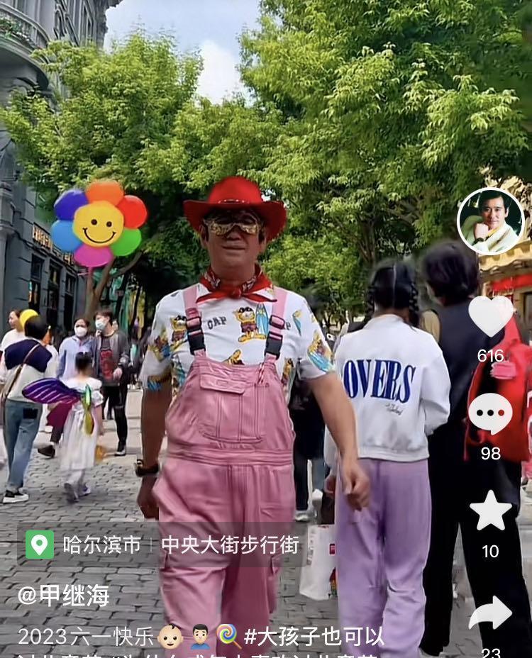 在哈尔滨中央大街的街头,你总能看到一个穿着奇装异服的男子。