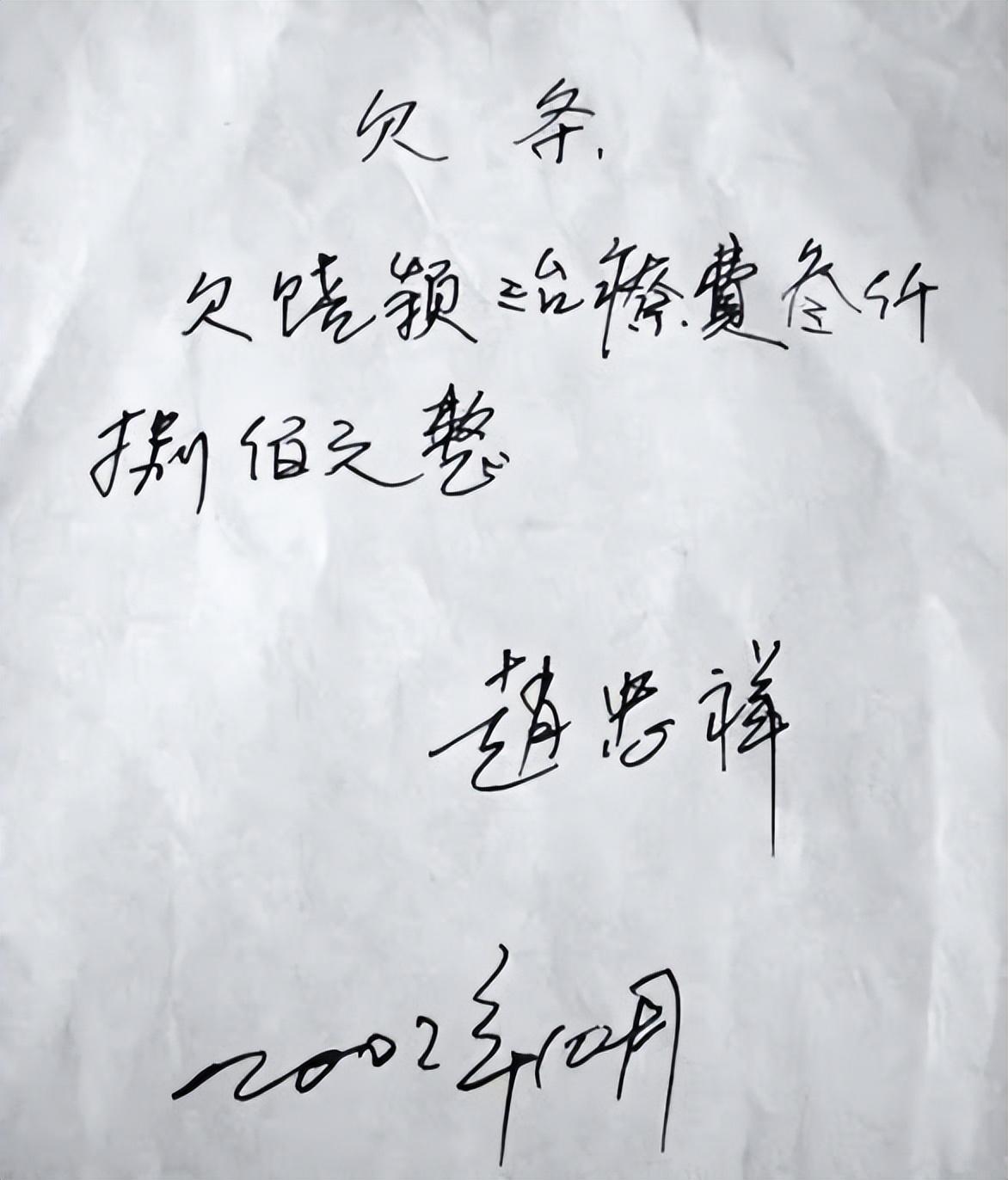 而欠条则是赵忠祥写给她的借款凭证,下方的落款签名,就是赵忠祥。