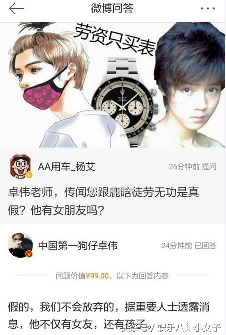 今日有网友向卓伟提问:“卓伟老师,传闻您跟鹿晗徒劳无功是真假?他有女朋友吗?”