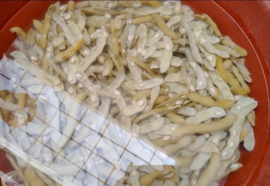 狗儿豆,学名也叫龙爪豆,一到这个时候,一丛丛的狗爪豆就沉甸甸地挂在架子上,一棵就能收几大箩筐,摘了一大背篓,吃不完,把它煮熟剥皮,用清水漂几天,放冰箱里冻起来,想吃就拿一包出来吃,很方便。