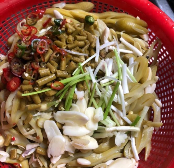 2、狗儿豆,姜,蒜,辣椒等全部切丝备用
