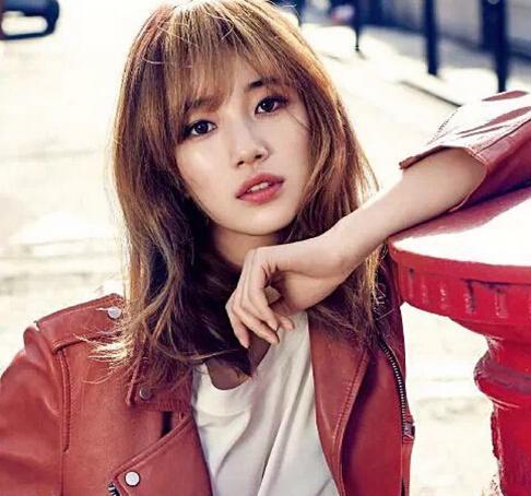 秀智的中长发韩范十足,空气刘海温柔可爱,中长发慵懒随意,修饰脸型更显性感,金棕色挑染凸显时尚气质。