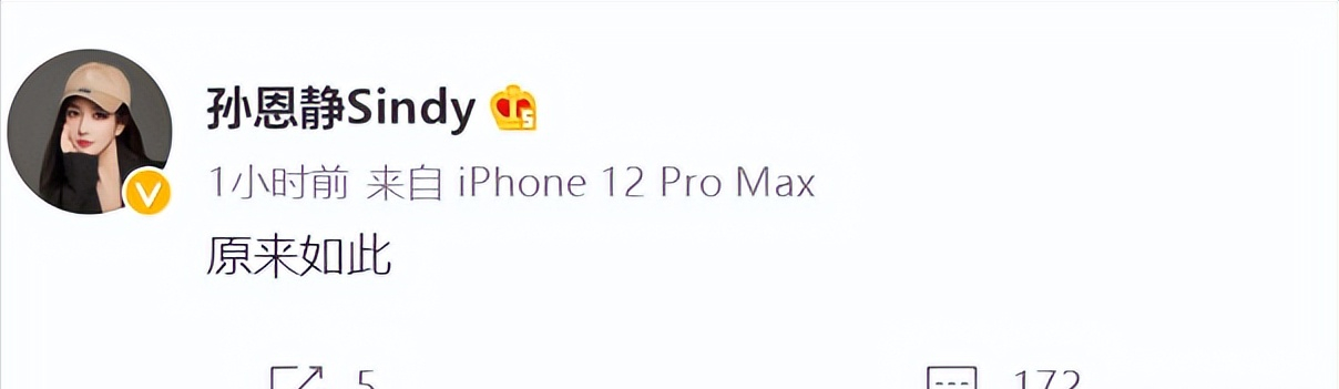 但是,显然这一个回应直接激怒了前妻孙恩静,她直接发文回了四个字“原来如此”……
