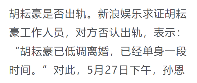 随后有媒体联系到胡耘豪工作人员,对方表示胡耘豪已经离婚,并且单身了一段时间了。