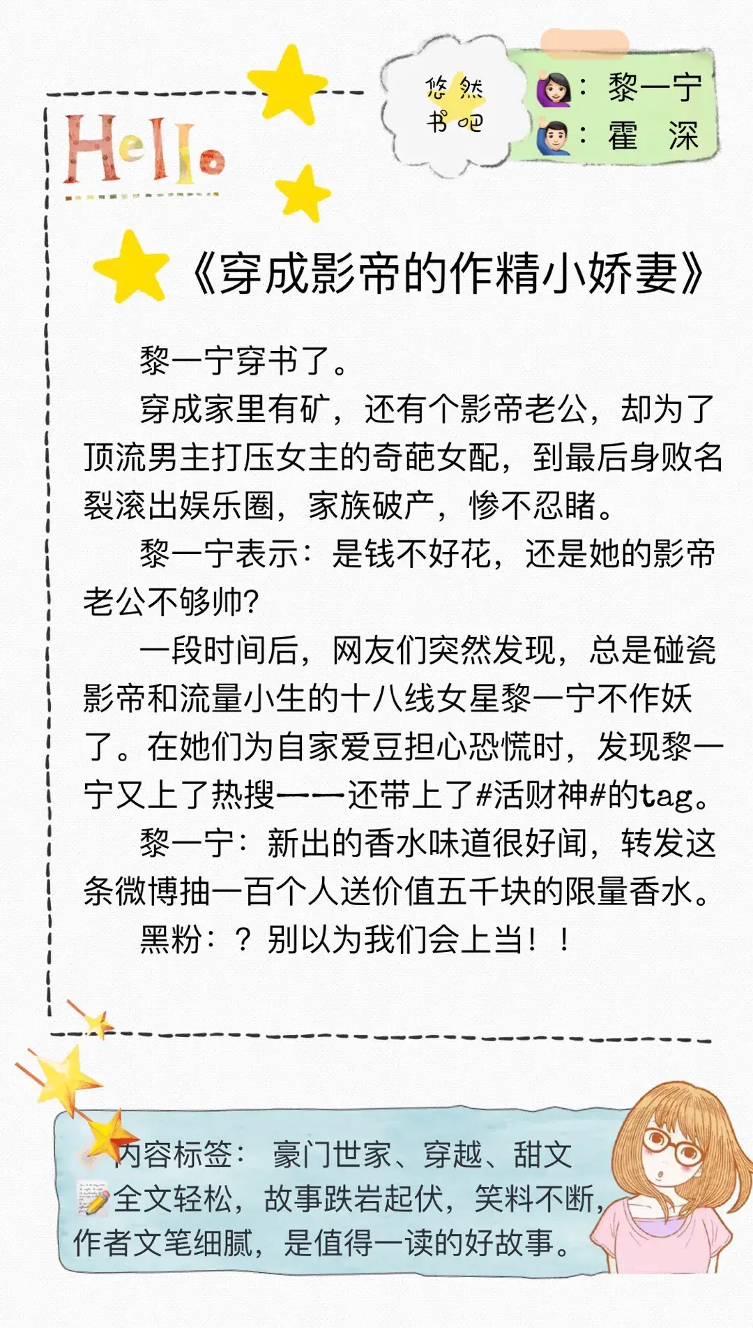 3️⃣《穿成影帝的作精小娇妻》~时星草