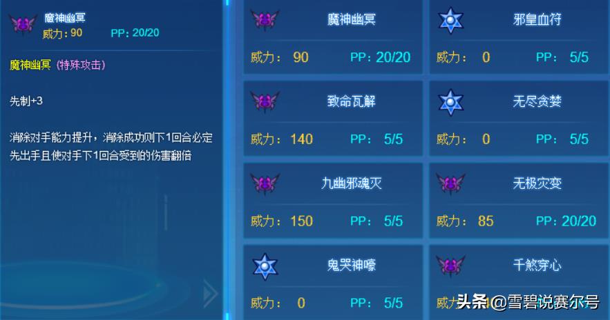 魔神幽冥:先制+3;消除对手能力提升状态;消除成功下一回合必定先出手,且使对手下回合受到的伤害翻倍。2016年的时候,还能打打BOSS。