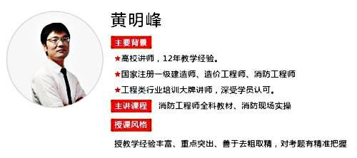 不惑老师具有二十多年的工作经验,参与过多个知名工程项目的设计、施工、开发、运营。早期在工业项目建设领域工作,后来进入民用建筑领域。具有北京市人事系统评定的高级工程师职称,拥有多个注册执业资格证书,是业内少有的懂原理、有实践、又擅长培训和考试的全科目老师,授课直击考点,深入浅出,知其然并知其所以然,擅长把繁杂知识点分类归纳,减轻记忆负担,广受学生好评。其声音最具特色,是消防最好男声,很有磁性,语速适中,听着很舒服,不会产生疲劳。