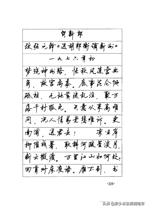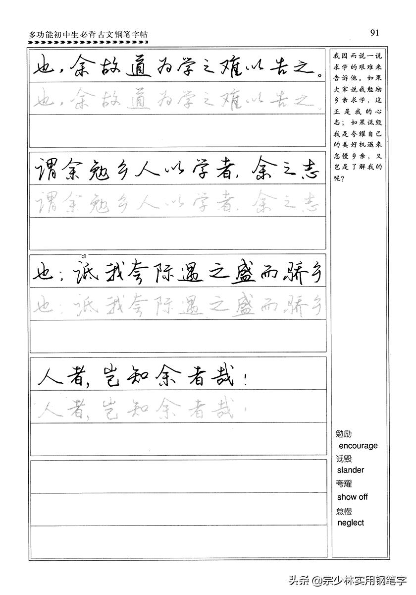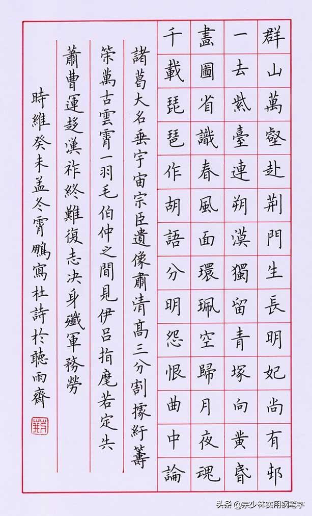 敲黑板:本人持续分享古今著名书法家的书法作品以及书法教材类,方便书友临摹学习,更多资源看我以往发布的文章和视频。学习书法可以参考《宗少林实用钢笔字》视频课程,专业的视角,系统的讲解演示。您的关注、点赞、评论、转发,是我持续分享的动力。