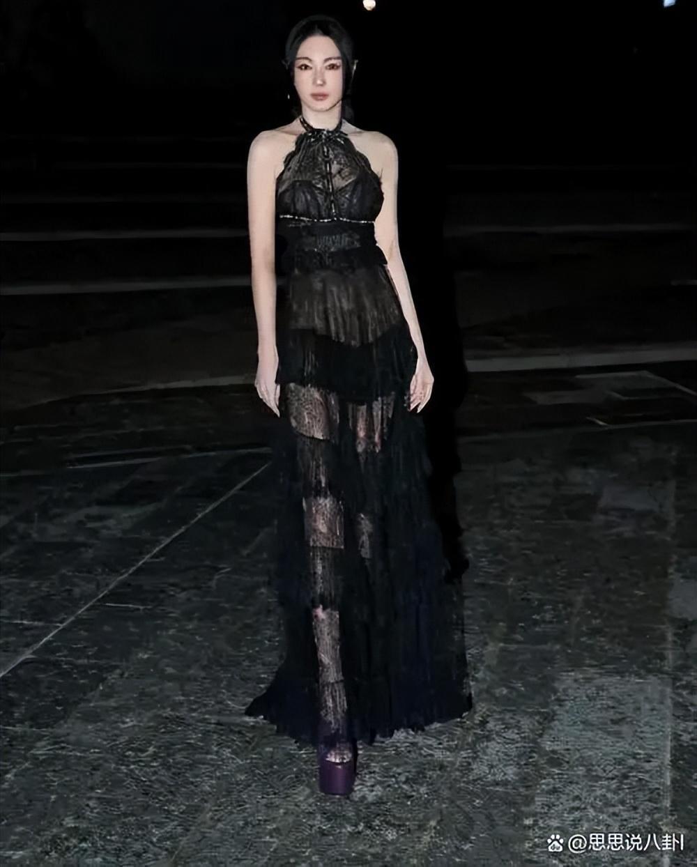 透明的蕾丝设计将张雨绮的大腿和臀部完全展现,这样的大胆穿搭使得她的身体曲线一览无余。她保留了自信,为自己的时尚选择感到骄傲。
