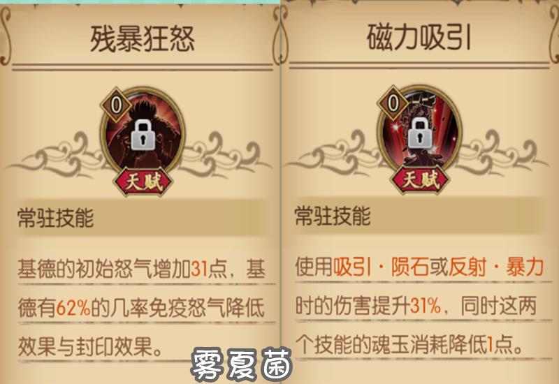 残暴狂怒:8星天赋,基德初始怒气增加50点,免疫怒气降低与封印效果(封印效果:禁用奥义)。