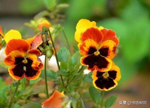花语:束缚。 不同颜色的三色堇表达的花语含义也不尽相同。红色的三色堇象征着思念、想念,紫色三色堇寓意无条件的爱,黄色的三色堇象征着喜忧参半的寓意。而大型三色堇的花语则是束缚,一种被束缚的人生是很累的,受到这种花的人代表着朋友希望你能挣脱束缚,做自己。