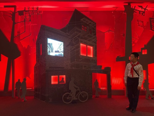 展陈形式精心设计,步入展厅即可看见基石装饰,象征着中国共产党克服艰难困苦,由小到大、从弱到强的历程。展厅内设置了三个不同时代的生活场景,从家居装潢和市民生活见微知著,体会社会发展。还有贺友直的《石库门风情》长卷与张弛的《海上揽胜》长卷组成的新旧上海对比,上海这座历久弥新的城市正在不断书写更加精彩的中国故事。