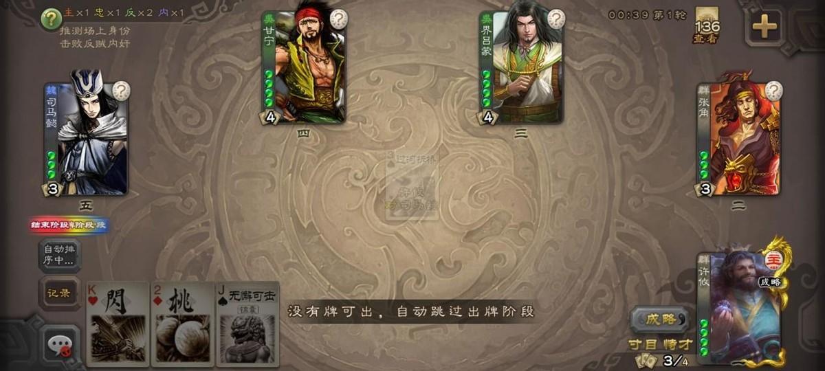 作为农民的许攸:加强了“控顶”后,诸多玩家便能自此摆脱“二号许攸光给队友烂牌”的坏名声,作为三号农民也不用算漏地主那“多摸一张”的牌了。