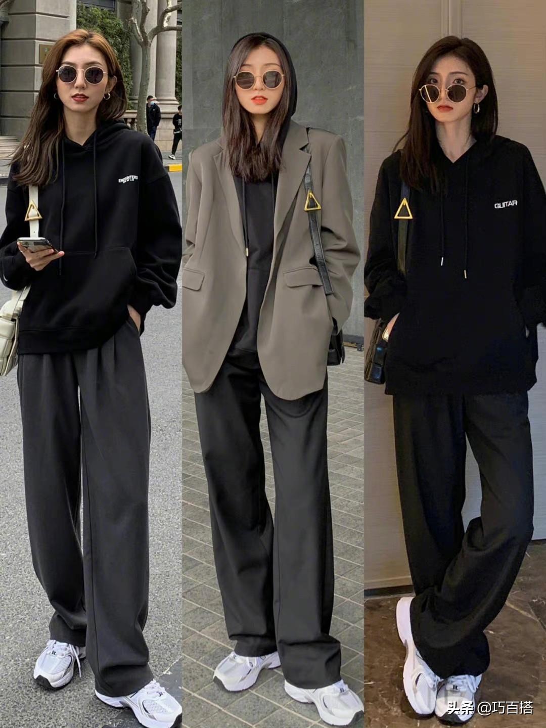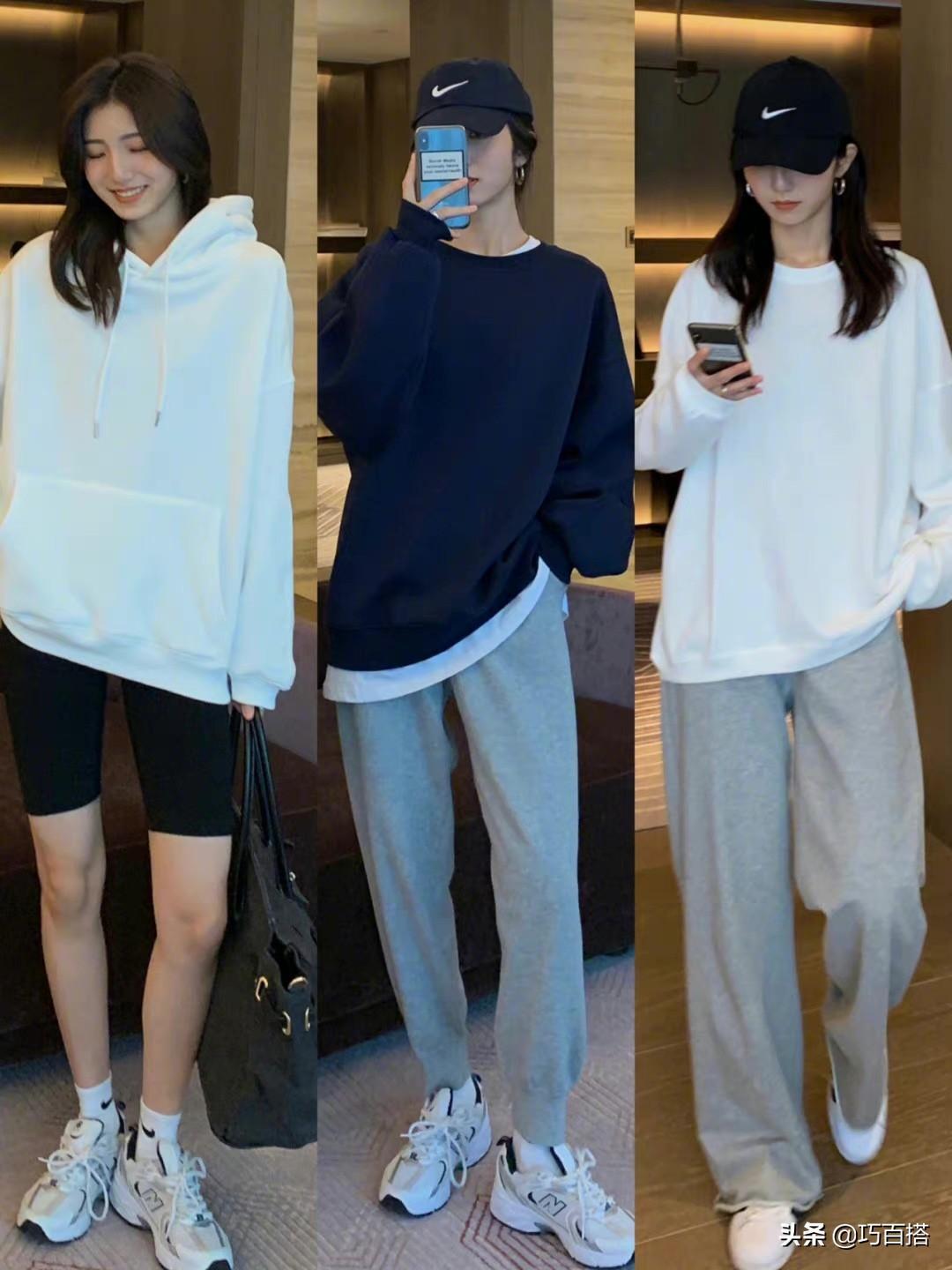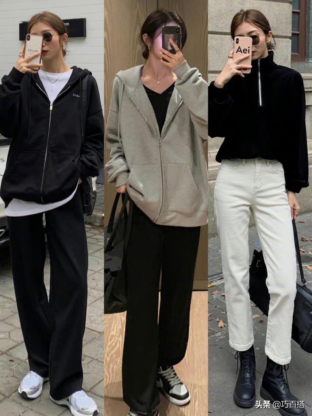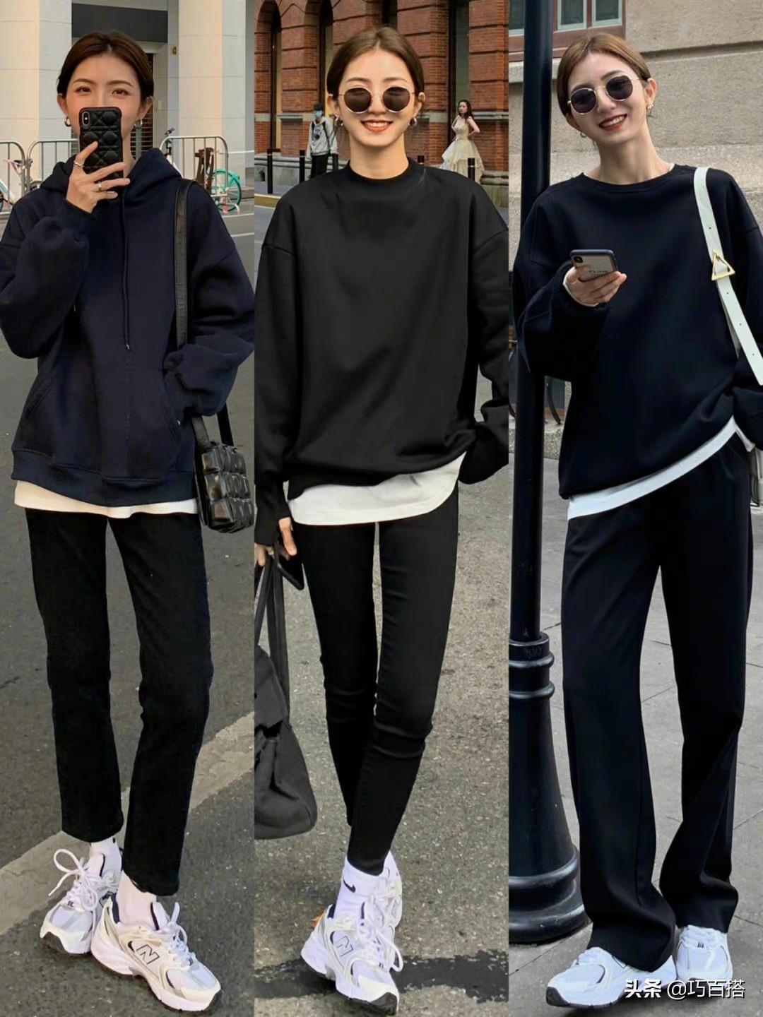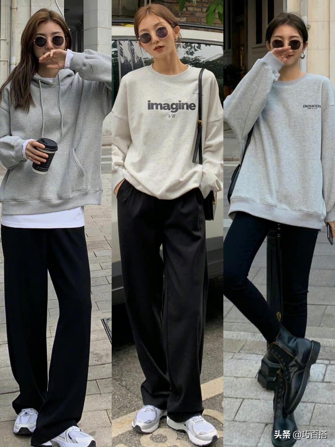 秋冬季节建议大家从三种颜色中选择基础款卫衣,黑色,白色与灰色。黑色的显瘦,白色的清纯以及灰色的休闲,搭配任何外套都是信手拈来。