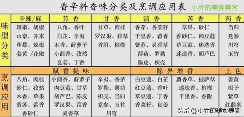 1张图,看懂50种香料味型分类,以及它们在烹调中的作用,值得收藏!