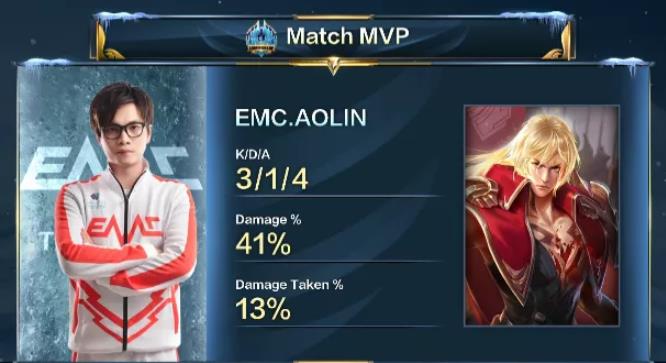 但即使是两件防御装在身上,Aolin的李信还是打出了全队41%的恐怖伤害,是当之无愧的队伍核心。有些玩家可能不知道,这位Aolin选手已经32岁了,他绝对是王者荣耀职业选手中,年龄最大的一个选手了。而且,Aolin还是EMC战队的老板!是的,这是一个有着电竞之心的电竞俱乐部老板,虽然澳门的电竞氛围一般,但Aolin自己组建了EMC战队,他给全队发工资,而且还亲自上场打比赛,他的关羽、李信都是carry全场的表现。