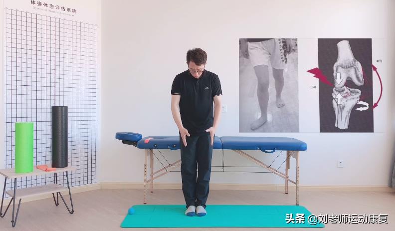 动作要领:保持膝盖与踝关节垂直下蹲,每组15个,每天3-4组。另一侧动作相同,方向相反。