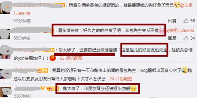 而宋祖儿的粉丝也纷纷在微博的留言区里评论,这辟谣照片看头发长度,是很长时间的存货,而包先生在视频博客里已经出现好几次了!