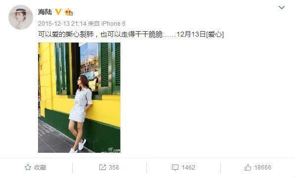 海陆也在微博发文“可以爱的撕心裂肺,也可以走得干干脆脆”疑似对于两人关系回应。
