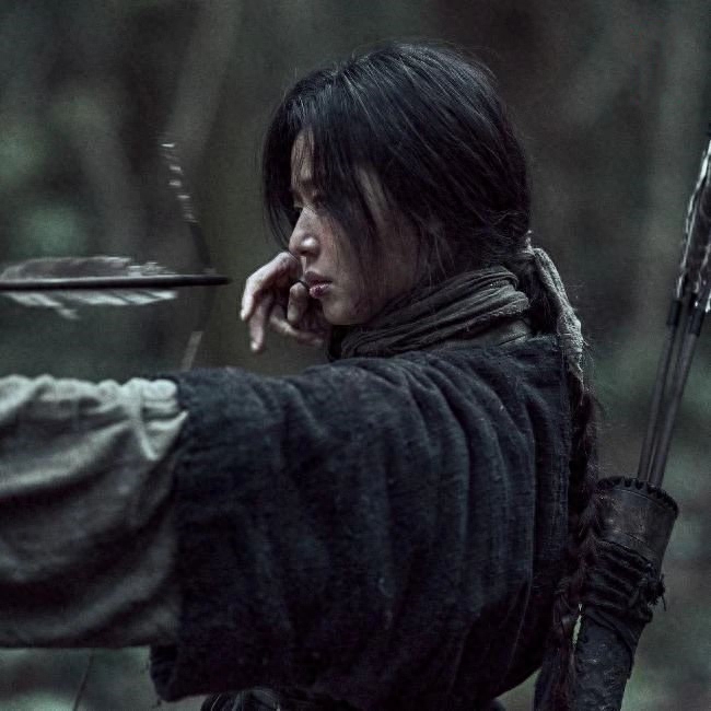 长大后的雅信变成女战士,不少人因活死人加猛兽袭击而遇害,雅信带领人群对抗丧尸。全智贤拿着弓箭参战,十分霸气。