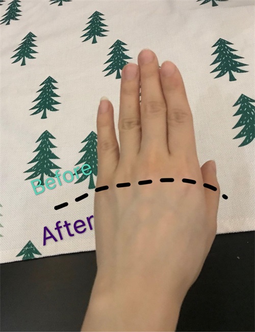 大家可以看看它的这个遮盖力,还是可以看到我的血管,遮盖力相对来说一般吧,起到了修饰作用,毕竟是一款轻薄的粉底,想要遮盖得好还是需要用遮暇的