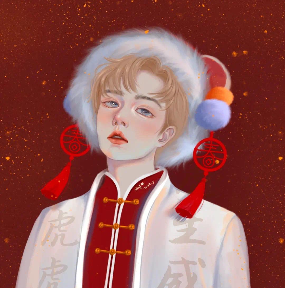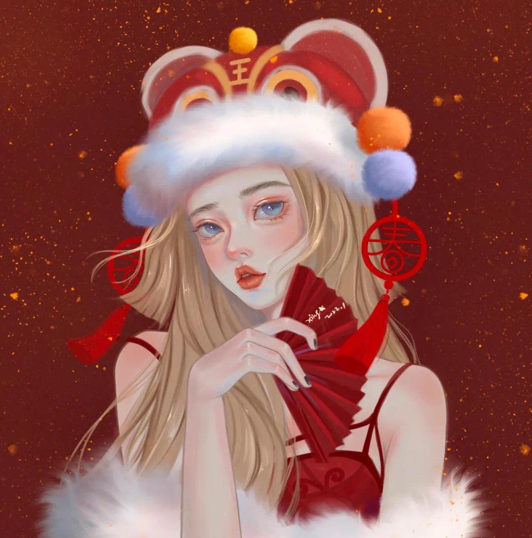 好看又喜庆的新年红色系男生头像、女生头像。